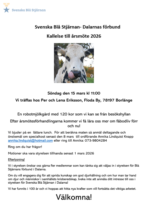 Årsmöte SBS Dalarnas förbund söndag 15/3 kl.11