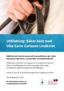Gå utbildningen Säker Häst med Ulla-Carin Carlsson Lindkvist.